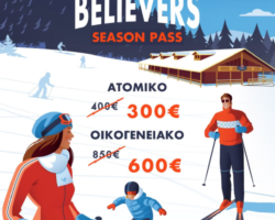 Από 27.10 έως 10.11 εξασφάλισε την ετήσια κάρτα σου στις προνομιακές τιμές των BELIEVERS:  Ατομική: 300€  Οικογενειακή: 600€ Η περσινή χρονιά ήταν από τις πιο δυνατές  87 μέρες δράσης, βραδινές πίστες, events, freestyle, parties και χιλιάδες χαμόγελα στο βουνό. Και φέτος; Περισσότερα events, περισσότερη ενέργεια και μια μεγάλη έκπληξη που έρχεται να...Περισσότερα...